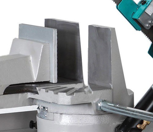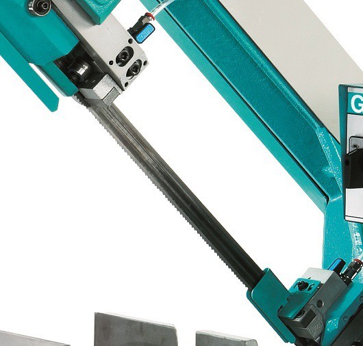 Huvudet girar från 0 till 60° vänster. Hårdmetallstyrningar för sågbladet och kullager för bandriktning.